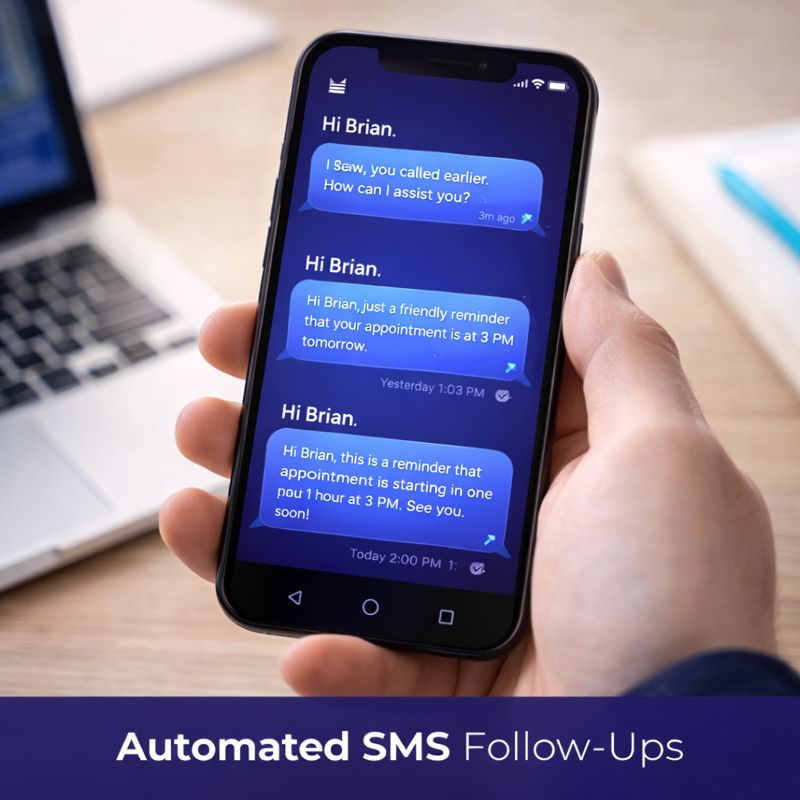 Never miss a lead again. Our AI-powered voice and chat agents answer calls, respond to messages, and automatically book appointments 24/7—so your business captures opportunities even after hours.